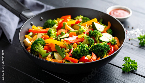 Colorful vegetable stir-fry in a wok, vibrant and healthy