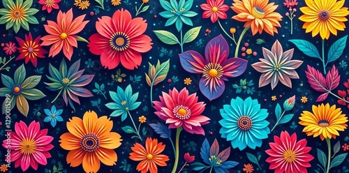 Colorful, vibrant floral pattern in abstract style, background, floral