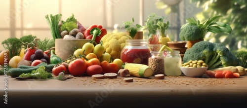 colorful, vibrant, fresh, assorted, organic, vegetables, fruits, bowl, wooden table, rustic, natural, earthy, still life, dynamic, appetizing, healthy, nutritious, ingredients, culinary, kitchen