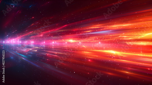 Colorful vibrant neon light stripes and dots, luminous lighttail stripes on a dark moody background, futuristic design, modern light art