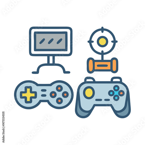 Colorful Video Game Console and Accessories Icons Vector