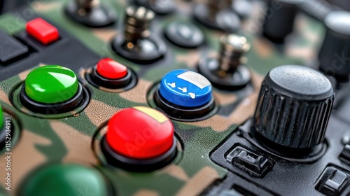 Colorful Vintage Gaming Controller Buttons and Joystick on Dark Background