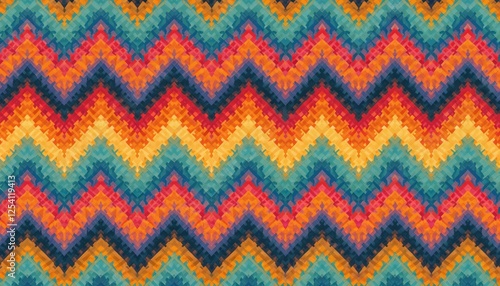 Colorful vintage zigzag chevron seamless pattern. Vibrant abstract geometric trendy repeat design. Rainbow hipster textile wallpaper retro art for surface prints, cloths and backdrops.