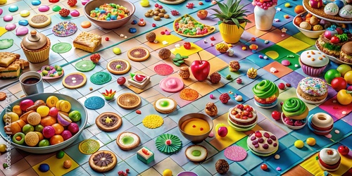 Colorful Vinyl Stickers on Kitchen Floor with Food Photography