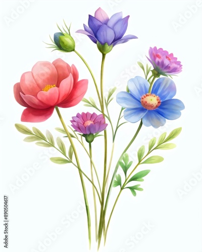 Colorful Watercolor Flowers Delicate Botanical Illustration Natural Floral