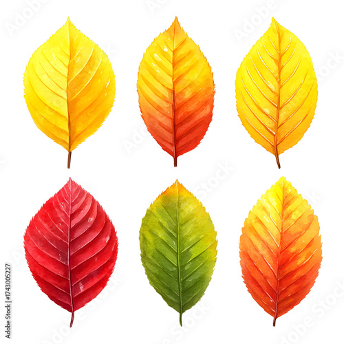 Colorful watercolor leaves set for design elements