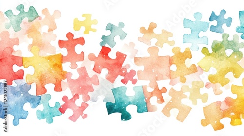 Colorful Watercolor Puzzle Pieces on White Background Design