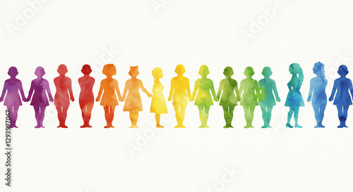 Colorful Watercolor Silhouettes of Women Holding Hands in Unity