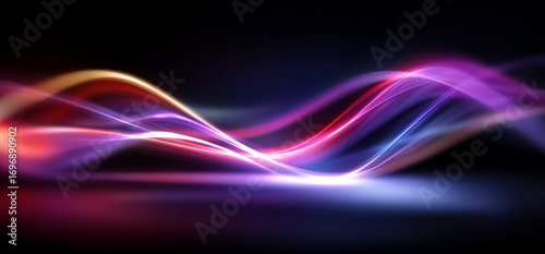 Colorful wave of light is displayed on a dark background. The colors are bright and vibrant
