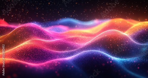 Colorful Waves and Mesh Structures in 3D Visualisation of Abstract Flowing Landscapes