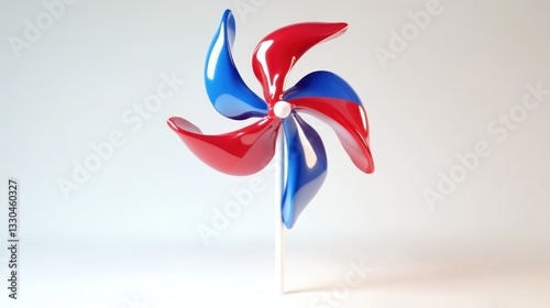 Colorful Windmill Spinning Against a Neutral Background Vibrant Red and Blue Blades Minimalis