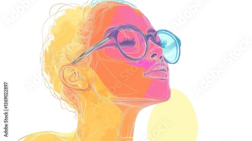 Colorful Woman with Glasses, Abstract Portrait