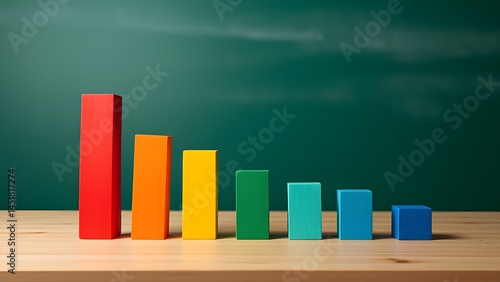 Colorful Wooden Blocks Bar Graph Chart on Desk