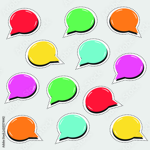 Colorfull empty speech bubbles sticker collection on bright background. Vector illustration.