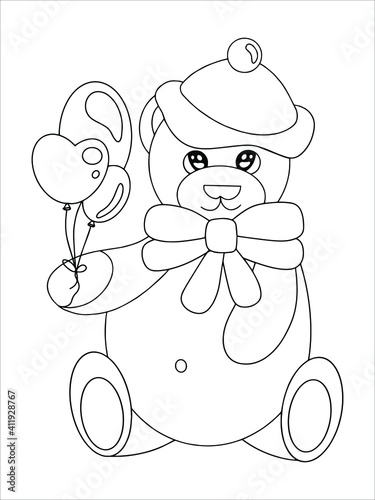 Coloring book for children. Vector over white background. Coloring bear with balls. Birthday. Valentine's Day
