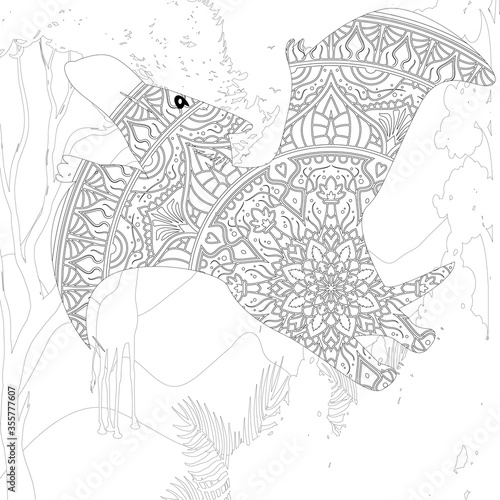 Coloring book for children with a dinosaur in cartoon style, tyrannosaurus