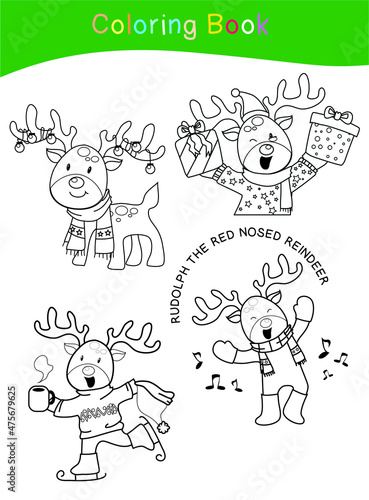 Coloring Christmas sets worksheet page. Educational printable coloring worksheet. Coloring game for preschool children. Black and white vector illustration. Motor skills education.