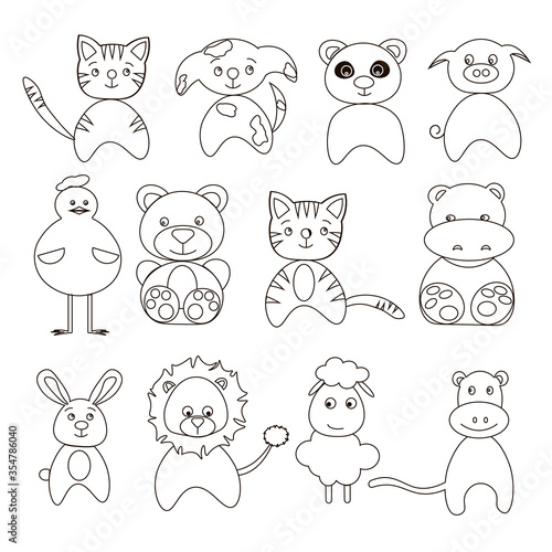 Coloring for kids out line. Different animals. Vector illustration hand draw.