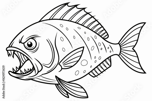 coloring page line art the piranha fish black vector