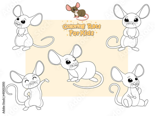 Coloring the Cute Rats Cartoon Set. Educational Game for Kids. Vector illustration With Cartoon Happy Animal