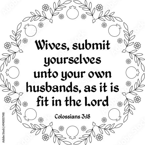 Colossians 3:18 Wives decorative black outline bible verse coloring page