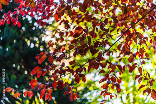 coloured leaves inside a Alesund public park during springtime, Norway
