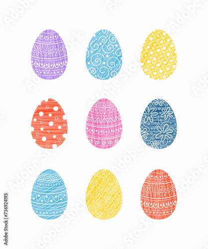 Colourful Easter eggs icon set. Hand painted decorations. Vector illustration