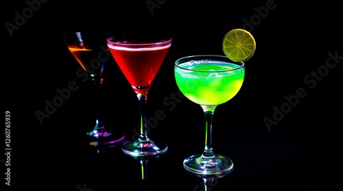 Colourful green cocktails isolated against black
