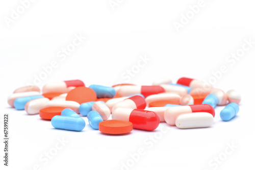 Colourful pills on white background