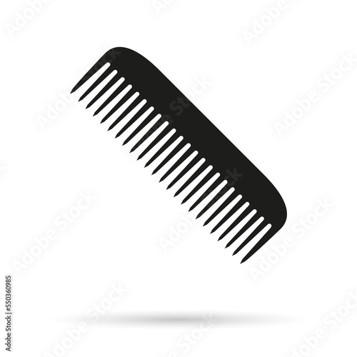 Comb icon. Hairbrush silhouette for hair, hairdresser and barber. Design logo isolated on white background. Symbol for fashion, salon, beauty and hairstyle. Graphic element for plastic tool. Vector