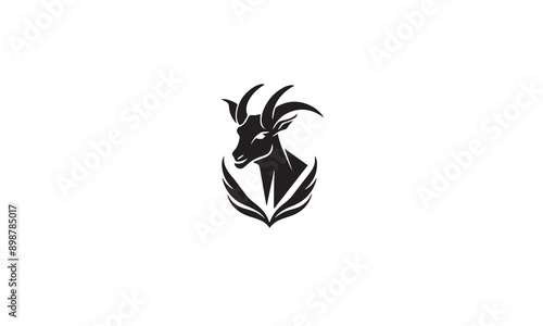 combine goat with leaf logo black simple flat icon on white background