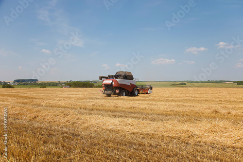 combine harvester on a wheat field