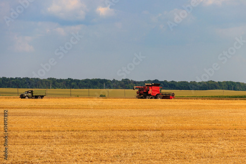 Combine harvester working on a wheat field. Harvesting the wheat. Agriculture concept
