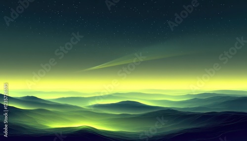 Comet Over Green Rolling Hills Night Sky