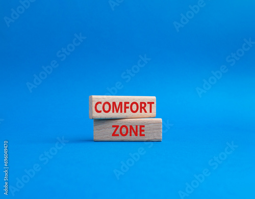 Comfort zone symbol. Concept word Comfort zone on wooden blocks. Beautiful blue background. Business and Comfort zone concept. Copy space