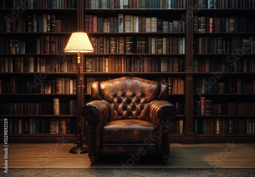 Comfortable leather armchair inviting readers in classic home library