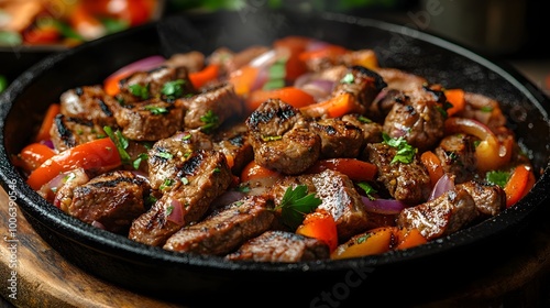 Comforting and flavorful homemade beef stew,simmered to perfection with tender chunks of beef,aromatic vegetables,and a blend of savory seasonings in a cast iron skillet.