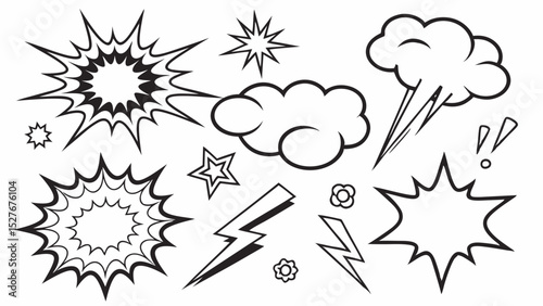 Comic Book Elements: Explosion, Speech Bubbles, Lightning Bolts – Design Assets for Graphic Novels & Comics