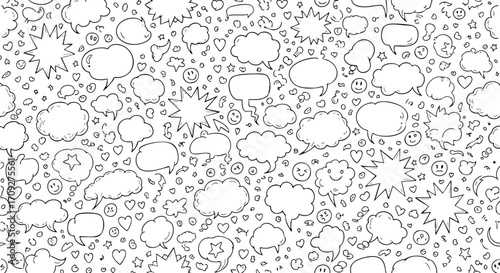Comic book speech bubbles and doodles background pattern for fun designs and messaging