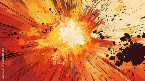Comic book style boom explosion with red and orange background. Blazetide. Illustration