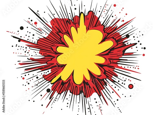 comic-style explosion vector in red and yellow, bold halftone outlines, isolated on white