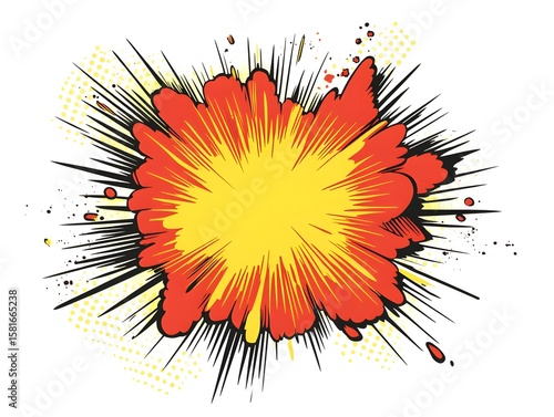 comic-style explosion vector in red and yellow, bold halftone outlines, isolated on white