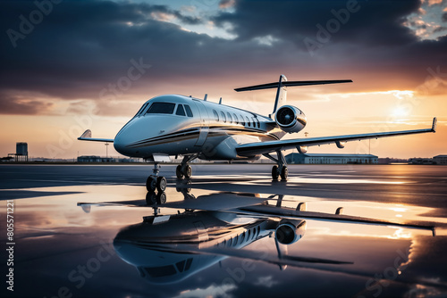 Commercial airplane on the runway. Business travel. Background with selective focus and copy space