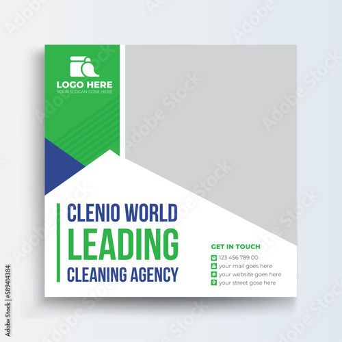 Commercial cleaning service social media promotional banner design template. Cleaning service marketing post banner design.