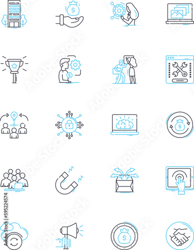 Commercial progress linear icons set. Expansion, Breakthrough, Growth, Profitability, Advancement, Development, Success line vector and concept signs. Prosperity,Modernization,Innovation outline