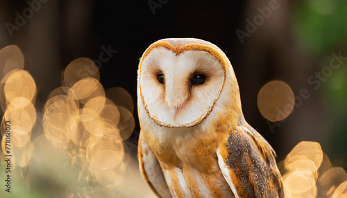 common barn owl ( Tyto albahead ) close up sitting