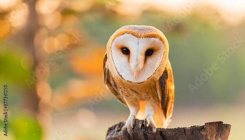 common barn owl ( Tyto albahead ) close up sitting