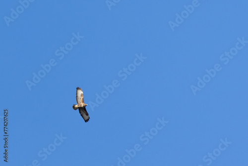 Common Buzzard, Buteo buteo, flying near East Grinstead in West Sussex