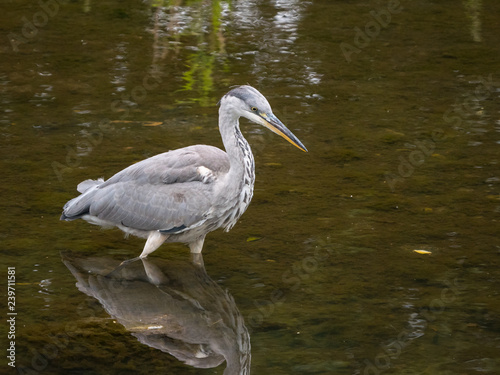 Common Heron / Grey Heron (Ardea cinerea) wading in a river hunting fish