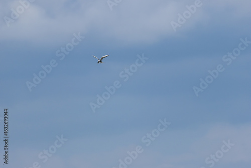 Common Tern (Sterna hirundo) in flight over Bull Island, Dublin – often found along coastal regions